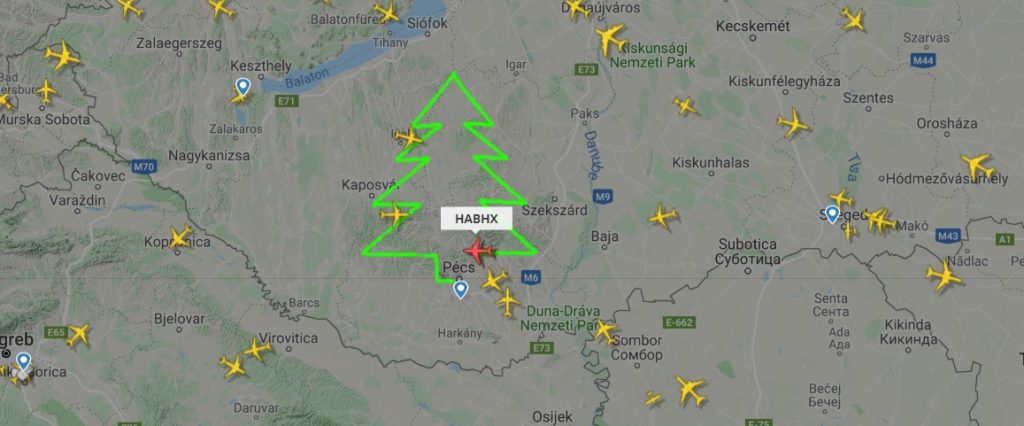 Pécsről indult az a Magnus Fusion 212-es gép, amely a Flighradar 24 képe szerint egy karácsonyfát rajzolt fel a légtérbe.