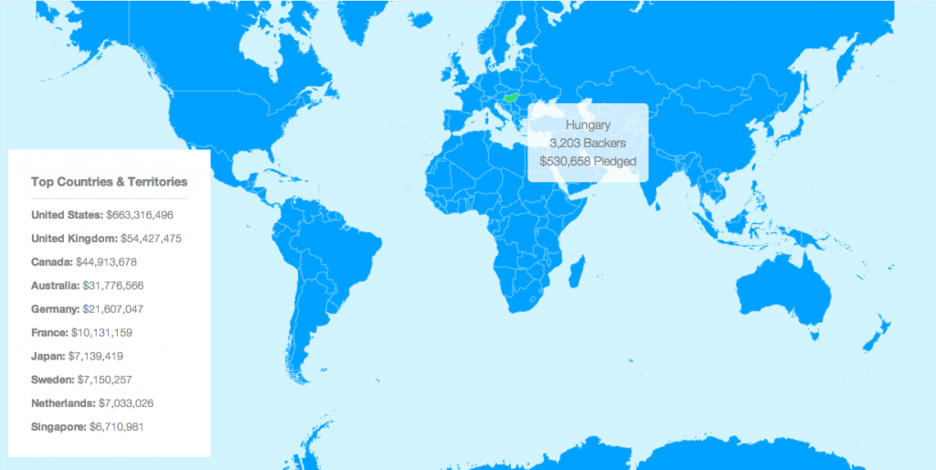 Hazánk is büszke lehet: több mint 500 ezer dollárral támogatott különböző projekteket az a 3203 ember, akiknek megnyílt a pénztárcája valamely izgalmas elképzelés irányába. Gratulálunk!