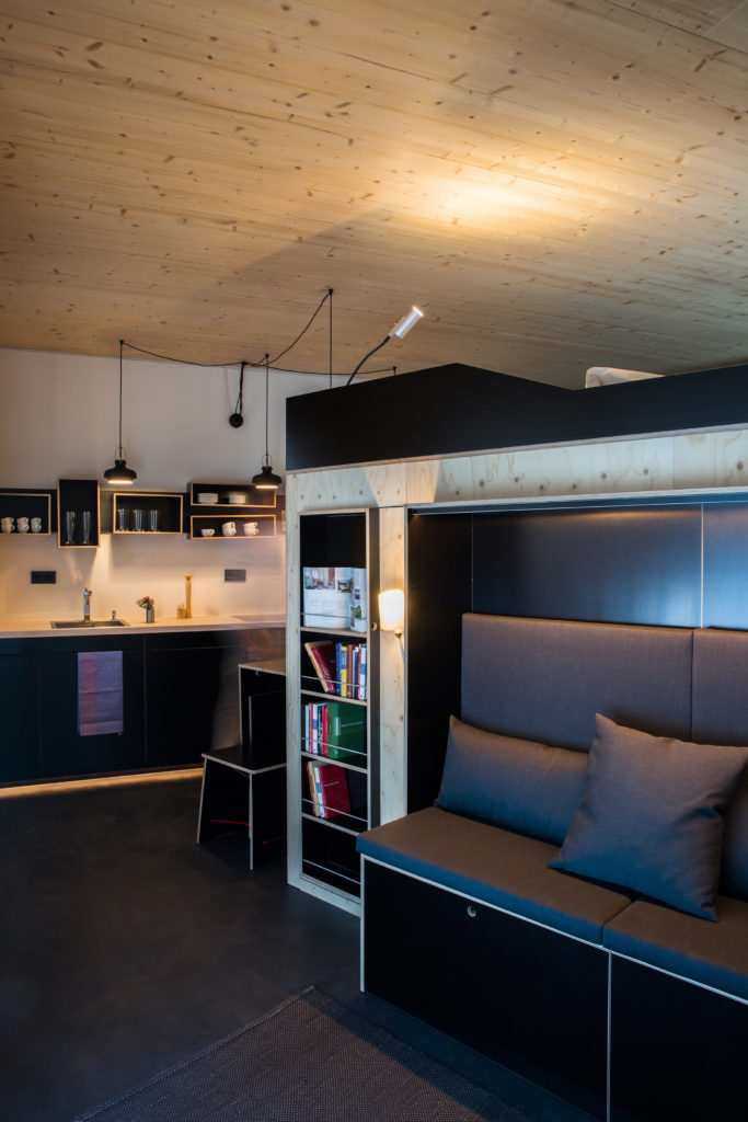 A tervező a kislakásosok problémáját akarta megoldani ezzel a kompakt darabbal – mit mondjuk, nem kicsit sikerült neki, mivel az egész doboz mindössze 140x200 centi padlódarabot foglal el egy szobán belül, ami egy normál franciaágy mérete. Ez meg egy icipicit több, mint egy alvómatrac. És baromi jól néz ki, szóval le a kalappal a tervező előtt!