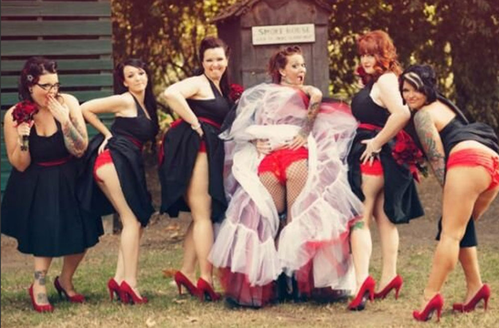Nem tudjuk, hogy ki kezdte el, és legfőképpen nem értjük, hogy miért, de ez most a dolog Amerikában. A közös menyasszony-koszorúslány fotón utóbbiak felfedik a seggüket. Fotóink is vannak bizonyítékként.