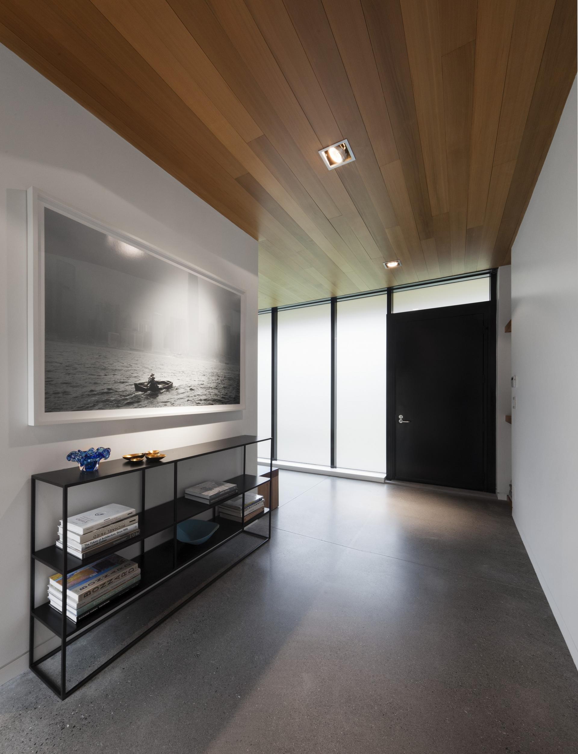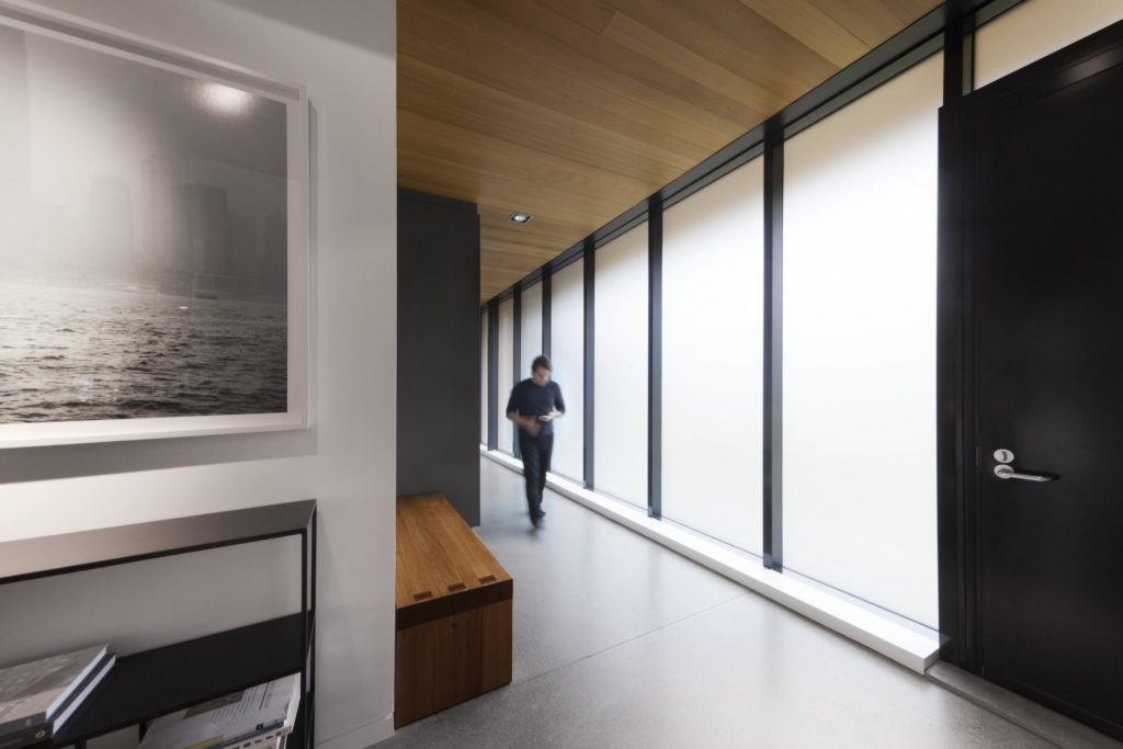 A házban élő család nagyon eltérő életritmusa miatt (többük munkája is otthonról végezhető és 12 órás időeltolódással dolgoznak távmunkában) az építészek egymástól jól elszeparált szárnyakat hoztak létre és gondoskodtak a megfelelő hangszigetelésről is. Persze nem olyan rideg ez, amilyennek így elsőre hangzik; inkább arról van szó, hogy a lakók munkaállomásai vannak távolabb helyezve egymástól; a nappali és a konyha közös életterek, az emeleten pedig a kisfiuk lakik.