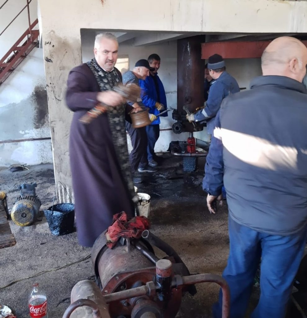kirendelt a helyszínre valószínűleg nem kevés pénzért egy ortodox pópát, hogy a rozsdás, lerohadt csövek között tartson egy egyházi szertartást, hátha eltakarodik a gonosz meghibásodás az alkatrészekből.