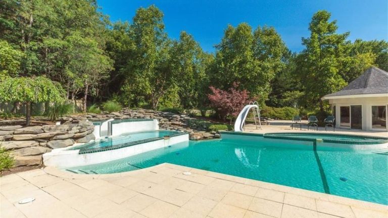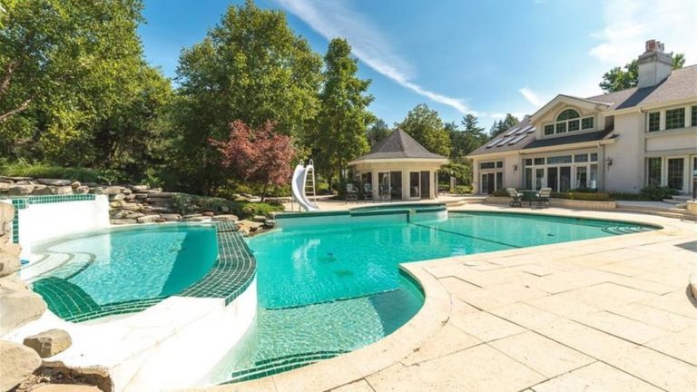 Az 1986-ban épült villa 1625 négyzetméterén összesen 22 szoba fér el. Ezek közül 5 háló, 8 fürdő és egy kétemeletes játékszoba biztosan akad benne. Na meg persze egy háromállásos garázs a járgányoknak. Ami pedig az extrákat illeti, található a birtokon egy gyönyörű medence, őrház, csodásan ápolt tó vízeséssel és teniszpálya/kosárlabdapálya is.