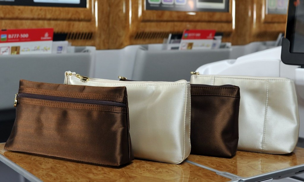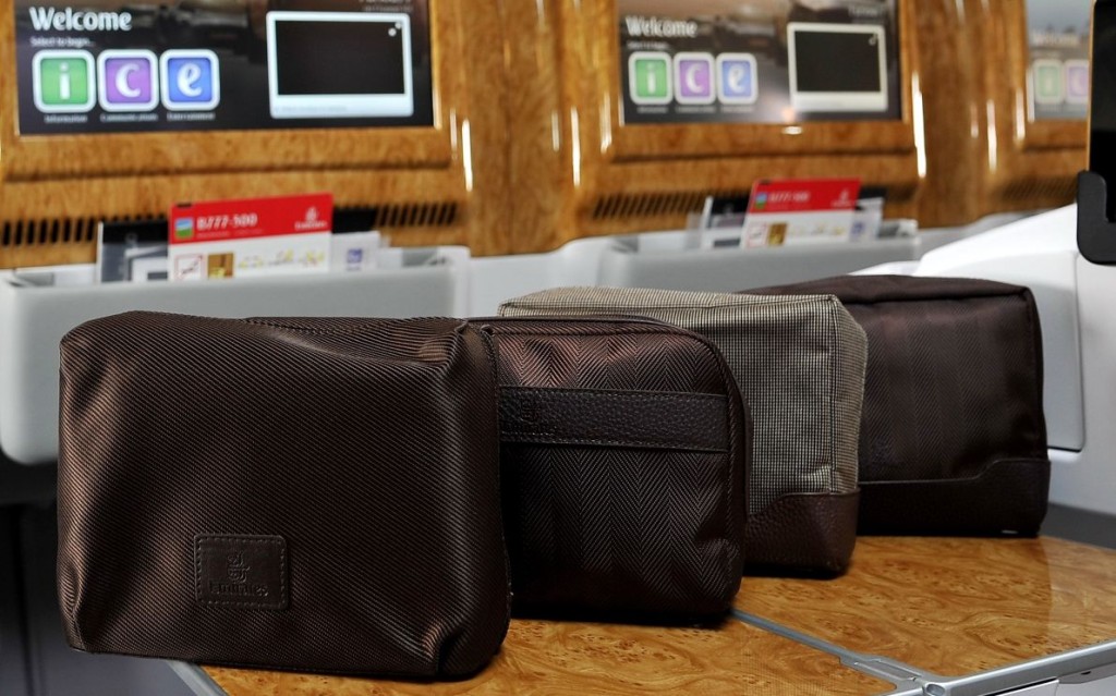 A csomagváltozatokat a Bvlgari legújabb kollekciója ihlette, amelyek elérhetősége szektoronként különbözik, így az átszállással utazók akár mind a négy különböző stílusú szettet megszerezhetik. Az Emirates First Class férfi utasainak prémium minőségű bőr-, míg a női utasoknak szatén-borítású táskákat kínál a légitársaság.