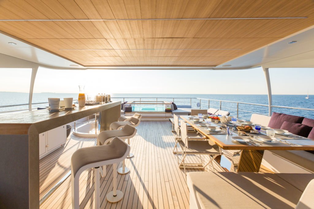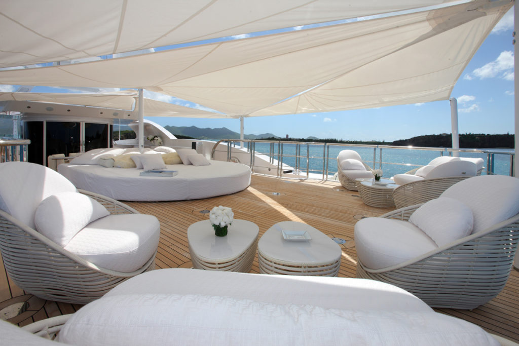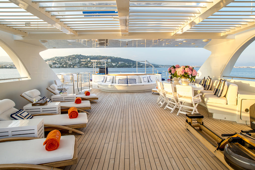 A napozóterasz mindig legnépszerűbb része a hajónak, sokan el se mozdulnak az UV-val átitatott fedélzetről. És amellett, hogy minden jacht és minden napozó egyedi, valahol mindegyiknek az a legfőbb funkciója, hogy egész nap szórakoztassa a vendégeket.