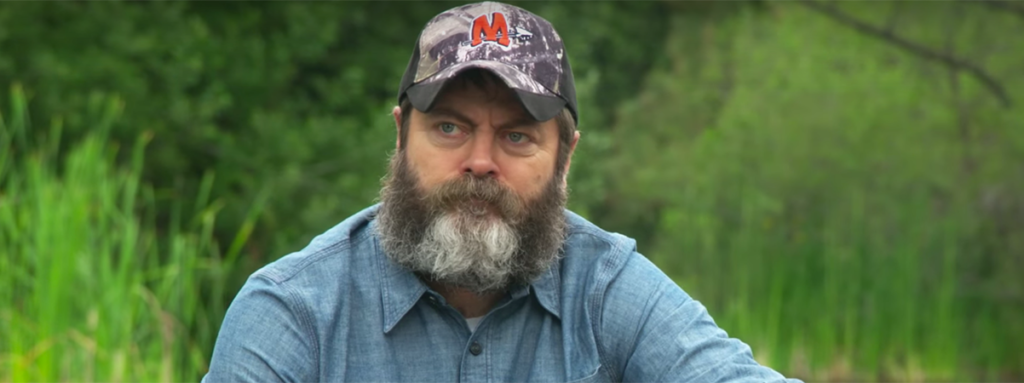 Offerman igazi férfi, tavaly decemberben 45 percig ült egy fotelben, és a férfiasság jegyében whiskeyt ivott, most pedig az apák napja előtt tiszteleg egy csónakban ülve.