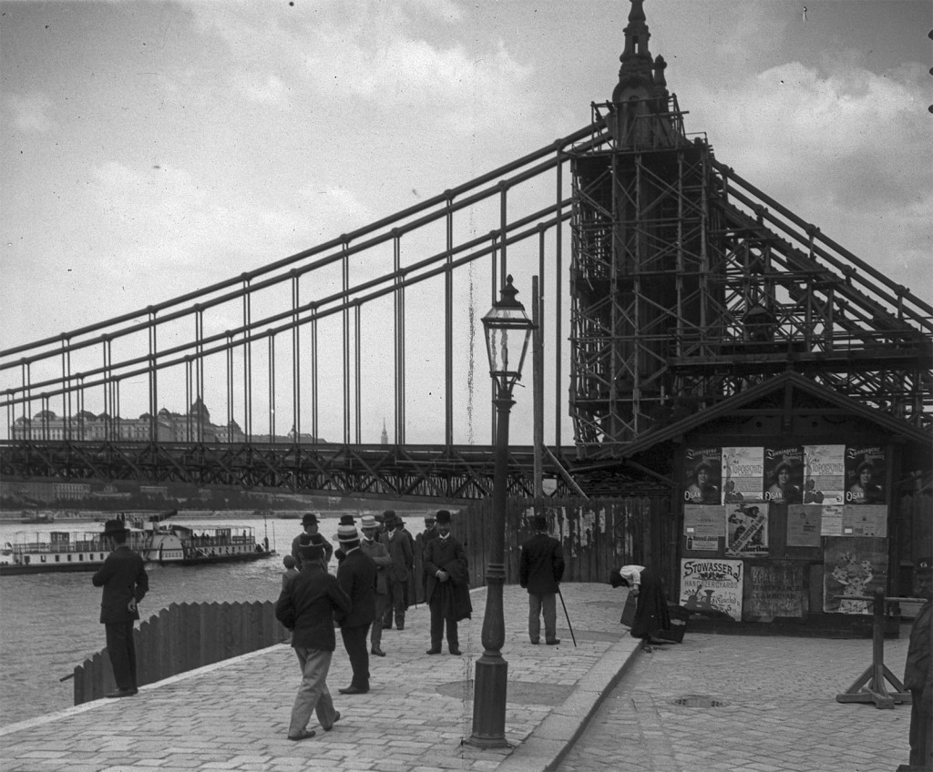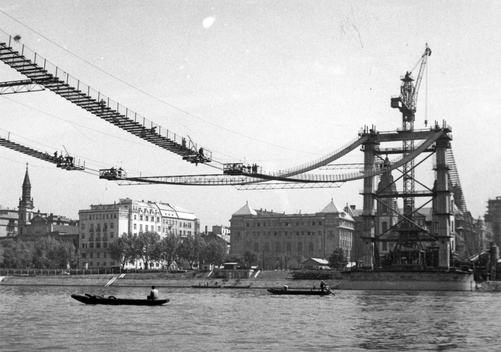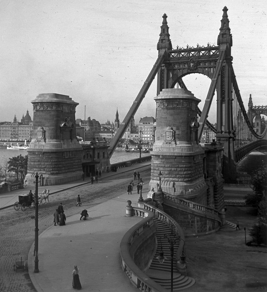 1903. október 16-án adták át a forgalomnak a világ első acélpilonos lánchídját, amely a maga korában egyedülálló módon mederpillér nélkül, 290 méteres áthidalással kötötte össze a budapesti első és ötödik kerületet. A villamosforgalom egy évvel később indult meg az útpálya két szélére épített síneken.
