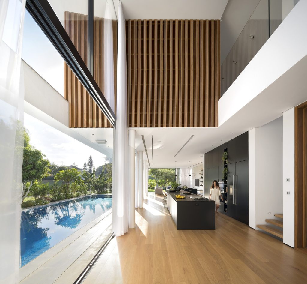 Csekély 760 négyzetméteres telken áll ez a több száz négyzetméteres luxusrezidencia, amitől annyira tátva maradt a szánk, hogy egy fél sertés elférne benne. Minden millimétere tökéletes, megtervezett és elegáns: egy fillért nem spóroltak se a tervezőkön, se a bútorozáson vagy épp az elképesztően szép szanitermegoldásokon és a moziszobán sem a tulajdonosok.