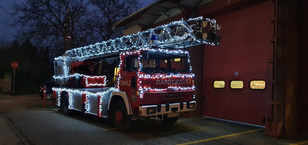 Az égősorral feldíszített létrás tűzoltóautót (ami egésze pontosan egy Magirus-Deutz 170) Advent vasárnapjain lehet megtekinteni a pomázi tűzoltóság előtt 16 és 19 óra között.