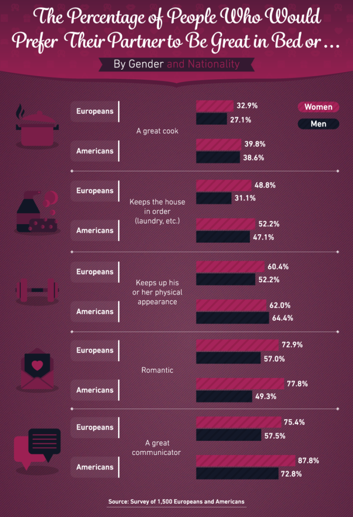A kutatócsoport 1500 ember véleményét kérte ki szerte Európában és az Egyesült Államokban, hogy aztán levonhassák a tanulságot és megállapíthassák, mégis mennyire játszik fontos szerepet a szex egy hosszútávú kapcsolatban. Nos, az eredmények alapján úgy tűnik, hogy a szex egy kissé túl van értékelve, akadnak ugyanis olyan dolgok, amelyeket többre értékelnek a nők. Ilyen például a jól működő kommunikáció, ami a harmonikus kapcsolatok alapja.