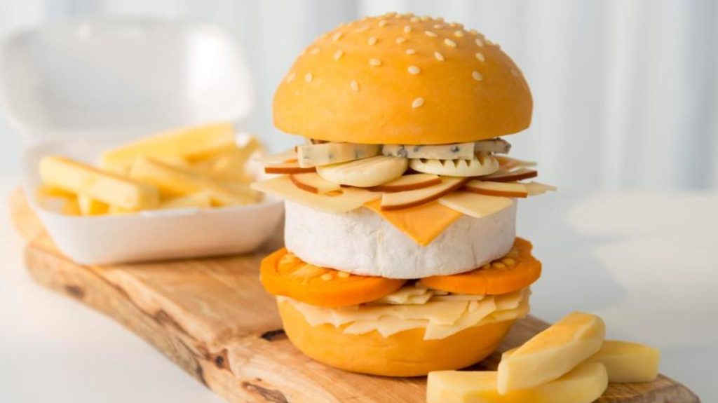 A The Ultimate Cheeseburger nevű ételszörny ugyanis annyira puritán, hogy tényleg nincs benne SEMMI MÁS, csak sajt, de abból legalább kilencféle.