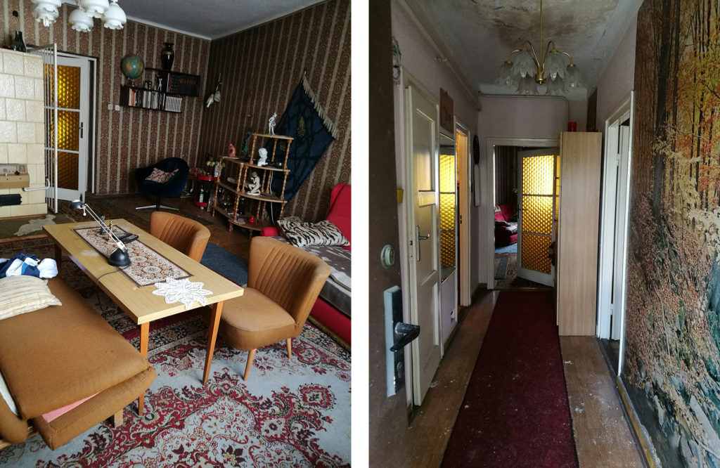 Az egy teljes és két félszobából álló lakás az adatlapja szerint valamikor az ötvenes években épülhetett, és egy kertvárosi hangulatú, eléggé felkapott környéken található. Amikor a tulajdonosok megvásárolták, a lakás eléggé lesújtó állapotban volt, a berendezés stílusa nem hogy a 21. századba, de még a kilencvenes évekbe sem nagyon érkezett meg. Íme, a fényképes bizonyítékok: