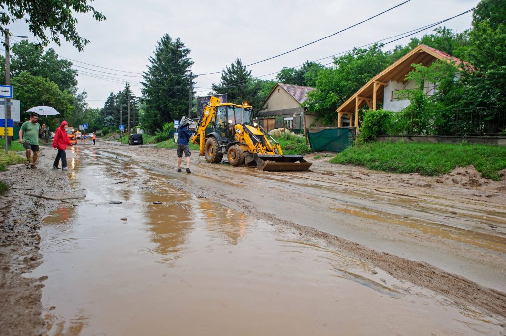 A rendőrségi közlemény szerint „a 10-es főút egy szakaszára az esőzés következtében nagy mennyiségű sár és törmelék került, ezért a rendőrök a járhatatlanná vált út megtisztításáig elterelik a forgalmat”. Így néz ki mindez képeken: