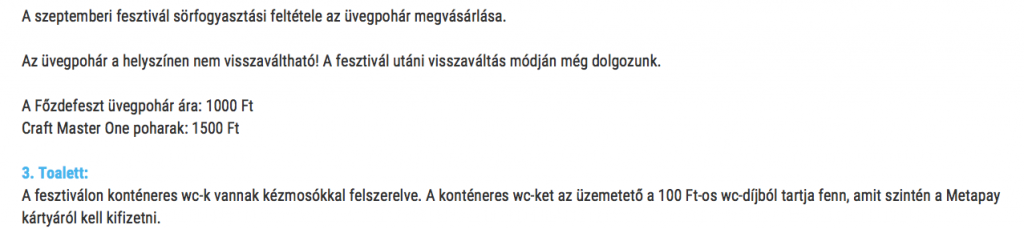 Azt vártuk volna, hogy a feszt szervezői azért egy kicsit magukba néznek, miután látják a nemtetszéseket kifejező kommentlavinákat és szeptemberre változtatnak a felálláson. De nem. Az első anyázás azért indult el a X. Főzdefeszt Facebook oldalán, mert a szervezők a saját ígéretüknek ellentmondva, miszerint a tavaszi, vissza nem váltott üvegpoharakat ősszel is lehet használni, kijelentették: újra meg kell venni azt a csetresz üvegpoharat. Azt meg már csak halkan jegyezzük meg, hogy a szeptember 4-5-6-án megrendezésre kerülő feszten a vécézés ötven forintról százra emelkedik.