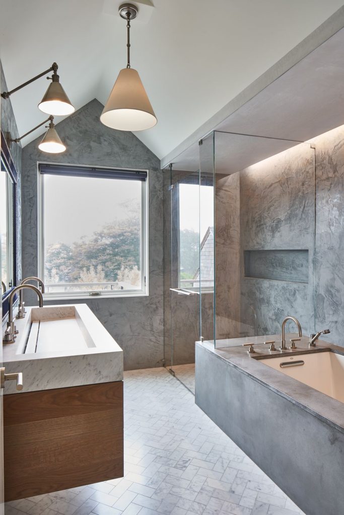 Márvány felületek, rezes elegancia, beton hatású burkolatok egy helyen: