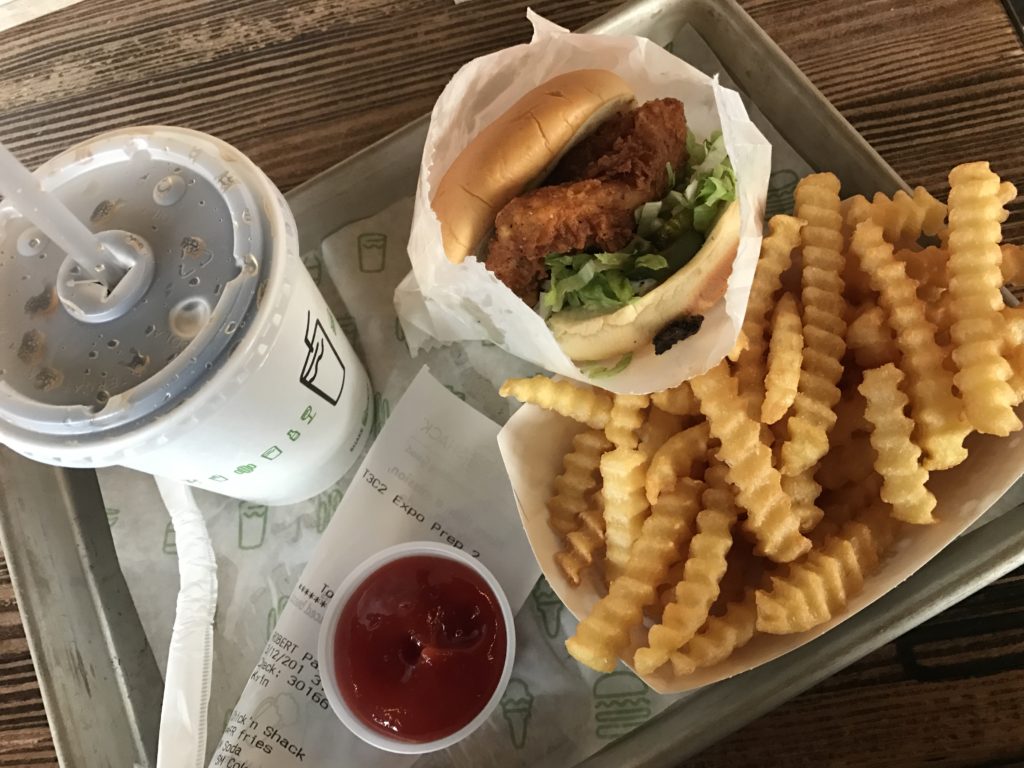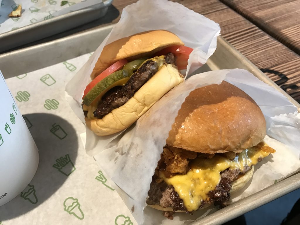 A Shake Shacket elképesztő hype övezi, és azon a helyen, ahol a szar helyek is tele vannak, ott egy keresett hely előtt hosszú sorok állnak. 10 perc sorban állás a rendelésig, majd húsz perc várakozás, mire megkapja az ember a kaját. Leülni szinte nincs sok esély, az emberek egymás szájában állva várakoznak a kajára, majd tolják be az arcukba.