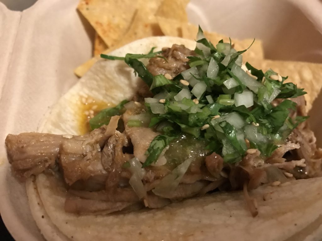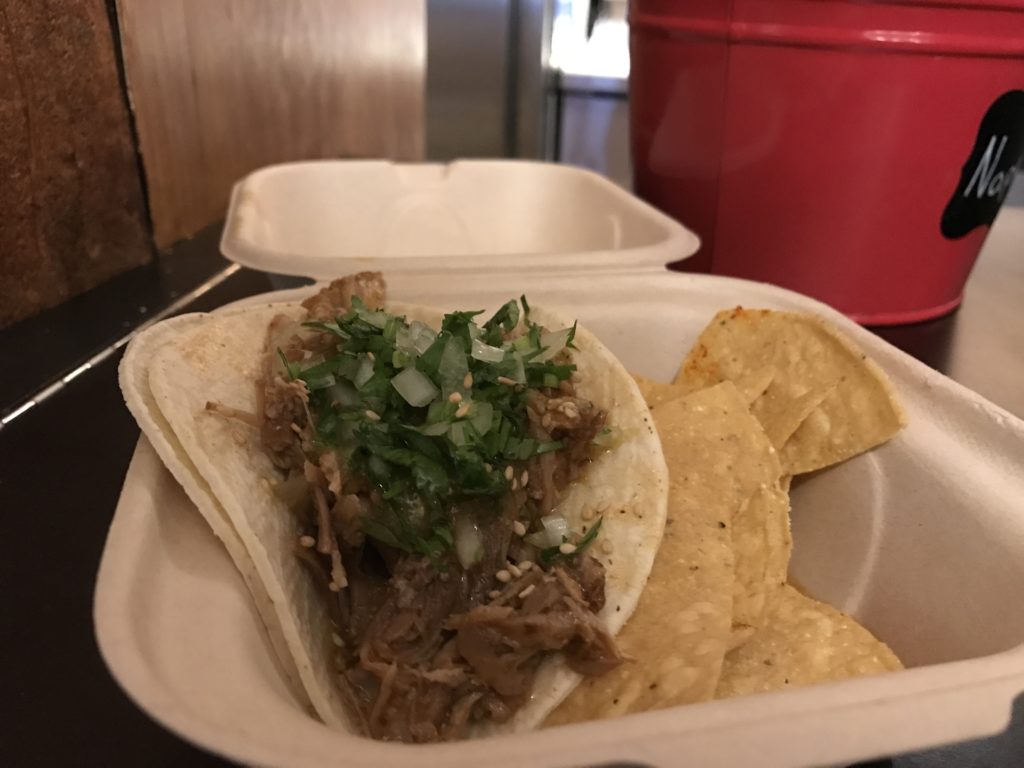 Ezt a tippet egy helyitől kaptam, mert állítólag a japán-mexikói crossoverben utazó Takumiék a legjobbak a taco játékban. Egyáltalán nem célom a hazai mexikói éttermekkel összehasonlítani az amerikai intézményeket, mert a földrajzi fekvés miatt előnyben vannak, és az is a javukra szól, hogy a legkisebb bodegában is egy olyan mexikói tag fogja összerakni a burritód/tacód/quesadillád, akinek chilisbab folyik az ereiben, és zseniális fűszerek lapulnak a zsebében. A Takumi tacója egyszerre volt elképesztően intenzív ízű, friss, és kreatív. A pácolt húsokban atom erősek, friss tortillalappal, friss zöldségekkel verhetetlenek.