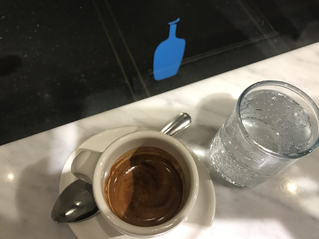 Olasz eszpresszókultúrán felnőtt európaiként néha elképesztően fájdalmas dolog New Yorkban. Igazi első világbeli probléma, tudom, de nagyjából nagyítóval kell keresni azokat a helyeket, ahol 1. normális eszpresszót adnak, 2. nem papírpohárban, hanem rendes porceláncsészében. Én egy-két williamsburgi és más brooklyni helyet nem számítva Manhattanben egy ilyen helyet találtam, az amerikai újhullámos kávés szcéna egyik minilánccá emelkedett zászlóshajóját, a Blue Bottle-t. Dióhéjban: a Blue Bottle kávéja finom (főként saját blendek, filterben és eszpresszóban is), de sokat kell várni, és a Rockefeller Plaza-nál lévő egységükben nem lehet leülni.