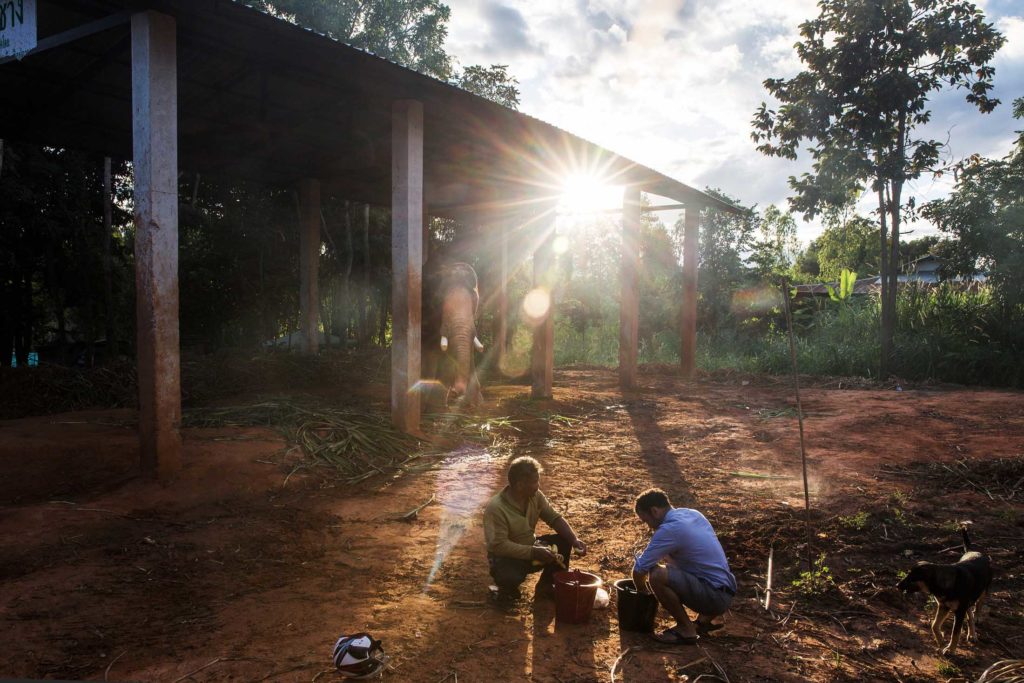 Mint Thaiföldön mindenhol, az állatokat Ban Ta Klang-ban is láncra verve tartják az idő jó részében. Bár az állatvédő csoportok ezt nagyon nem nézik jó szemmel, Dinkin azt mondja, együttműködnek az Golden Triangle Asian Elephant Foundation-nel, hogy az elefántgondozókat humánus ellátásra neveljék.