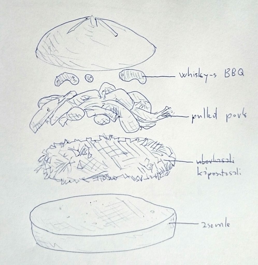 Az elkészült fotók azért biztosan segítenek valamelyest. Hát nézd már meg, milyen pajkosan izzad a sajt a mediumra sütött marhahúspogácsán! Hogyan kacsint rád a lilakáposzta-sali a szaftos pulled pork alól! Hogyan ver szimmetriát a középső zsemlecsík az egész kulináris nagykölteménybe! Micsoda kohézió! Micsoda harmonikus rezonancia! Micsoda orgazmikus gasztrovizualitás!
