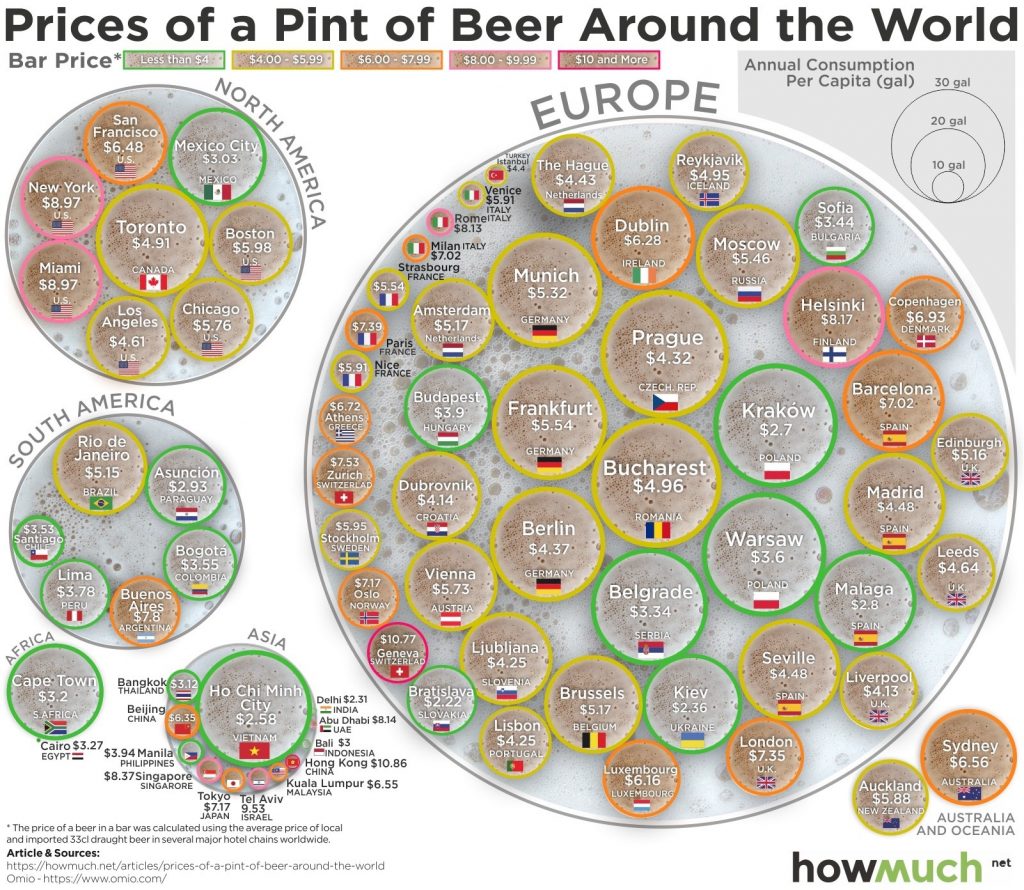 Bár látható, hogy az árak Magyarországon is magasabbak, mint amennyit egy átlagos kocsmában fizetnénk, ez az objektív összehasonlíthatóság miatt van, ugyanis a statisztikához nagyobb hotelláncok bárjainak az árait vették figyelembe, ahol értelemszerűen drágábban mérik a sört. Magyarországon így 3,9 dollár, azaz 1100 forint egy pohár sör, amivel az olcsóbb országok közé tartozunk. Persze aki igazán olcsón akar berúgni, annak Pozsonyba, Kijevbe vagy Krakkóba érdemes mennie.