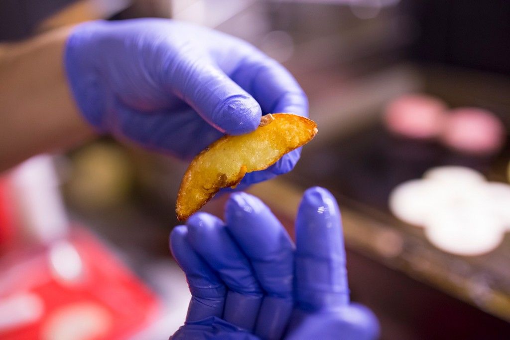 Köret gyanánt sem érjük be kevesebbel: egyrészt először főzött, majd egy éjszakán át hűlt burgonyát vetünk be a frituba. Az állás azért kell, hogy keményítő átalakuljon, így lesz a belseje vajpuha, a külseje pedig a sütés után észvesztően ropogós. A másik kísérő a káposztasaláta, melybe Laci tesz az elmaradhatatlan káposztán felül almát, répát, salottahagymát, tejfölt, majonézt, petrezselymet, citrom héját, és egy kevés levét is. Ennek a megfelelő arányú kombinációjából jött létre a csoda, melyet ezek után bárki elkészíthet otthon – rendesek vagyunk, hogy így elmondtuk, nem?