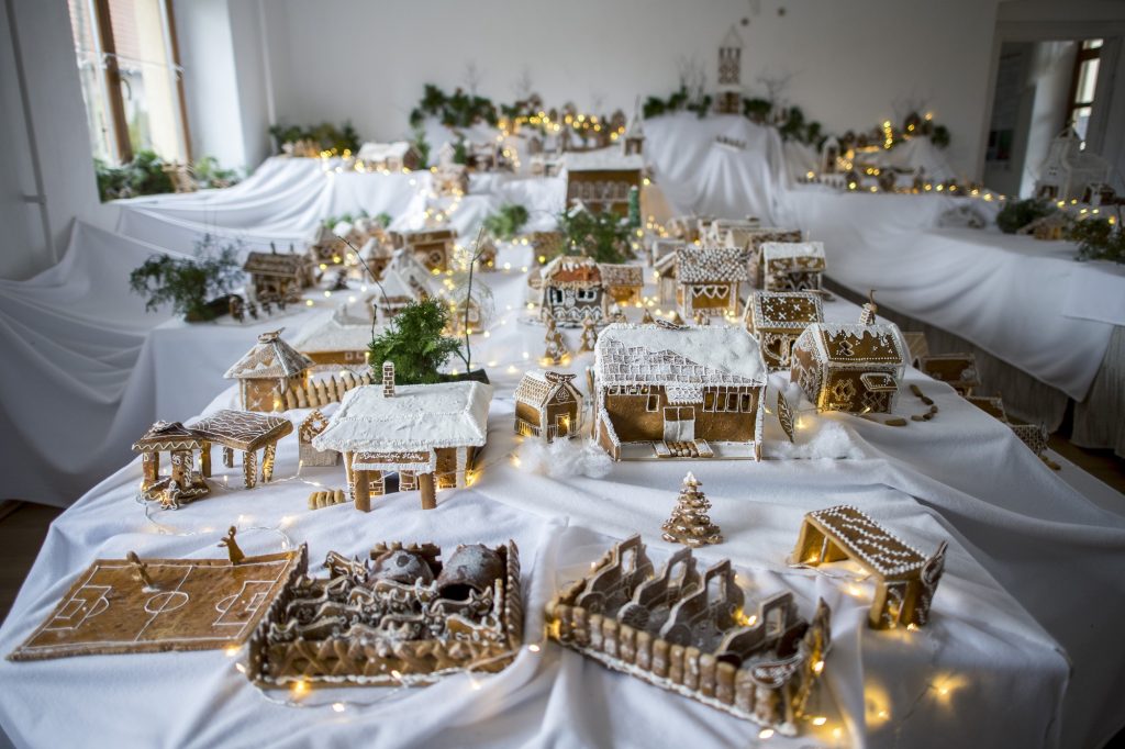 A Wikipedia szerint a falu lakossága hétszázharminc fő, és mivel nem egyetlen, sokemeletes házban laknak, óriási meló volt elkészíteni a kis házak – és a templom, az utcák, és néhány lakó – kicsinyített mézeskalács-változatát.