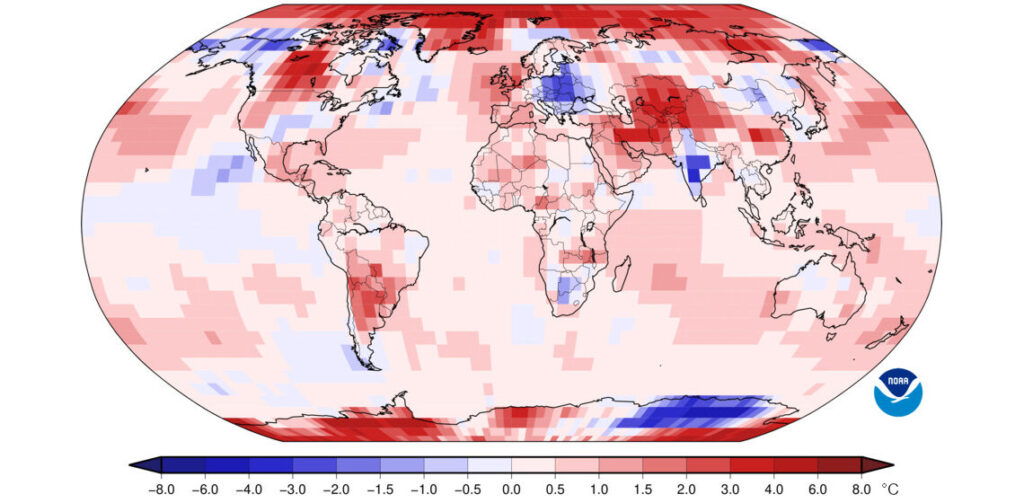 Magyarországon a május nagyjából 2°C-kal volt hűvösebb a klímaátlagnál, ami ugyan nem egyedülálló (2019 és 2021 között is hasonlóan hideg volt), de ettől még figyelemre méltó egy melegedő éghajlatban (az okairól itt olvashatsz). Ez azonban nem azt jelenti, hogy a bolygó egésze nem melegszik folyamatosan – a szubjektív érzékelésnél ezt sokkal hitelesebben jelzi az amerikai Környezeti Információs Központ (National Centers for Environmental Information, NCEI) által most közzétett hőtérképe, mely a 2025 májusában észlelt hőmérsékleti eltéréseket mutatja az 1991–2020-as klímaátlaghoz képest.