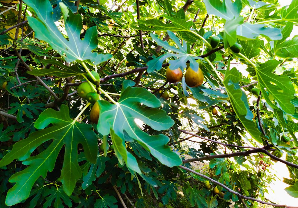 Idén úgyszólván uralja a tájat: amelyik kertben van fügefa, roskadozik a terméstől: körte nagyságú, szaftos, édes fügék lógnak rekeszszámra az ágakról. Szabályosan versenyezni kell a darazsakkal, hogy ki eszi meg előbb a sok fügét.