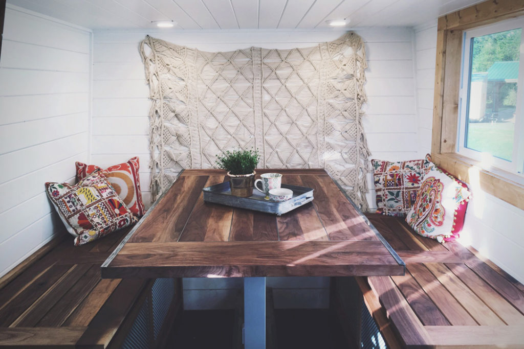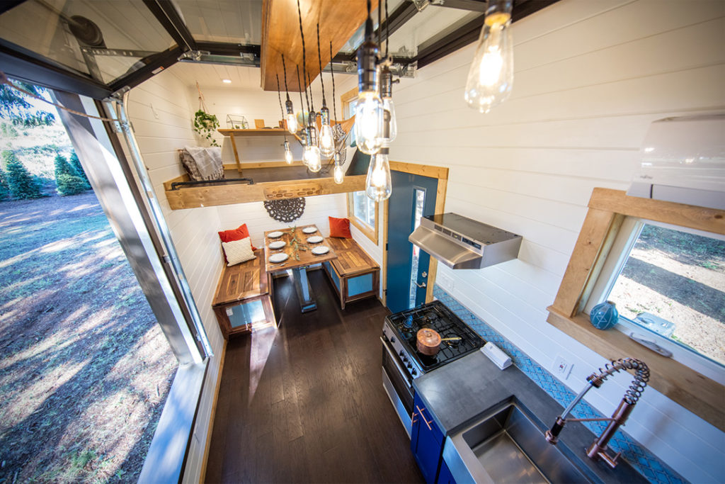 Egy portlandi családi vállalkozás, a Tiny Heirloom készítette ezt a mini, 8,5 méter hosszúságú kalandotthont, amit egy utánfutó belsejében alakítottak ki.