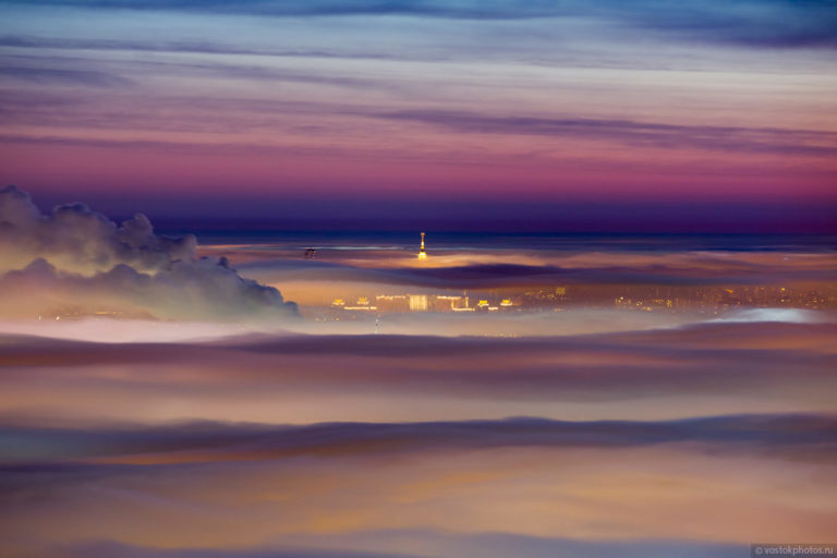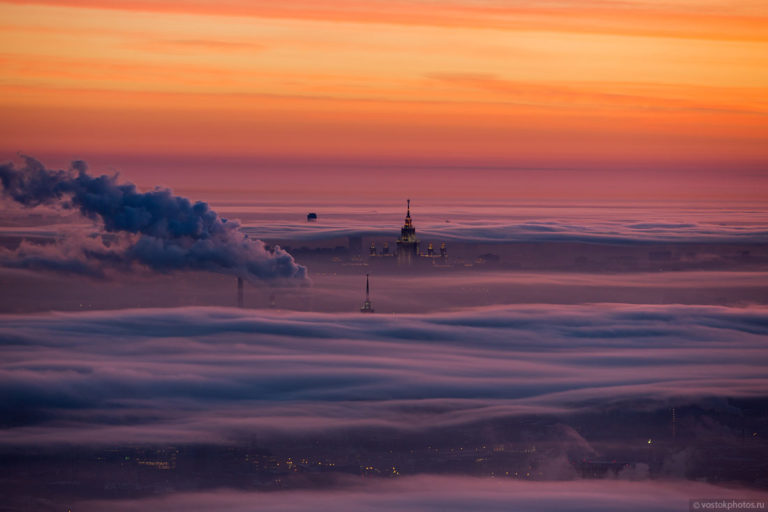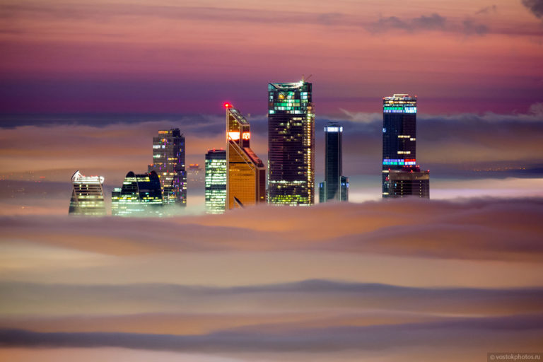 Az orosz főváros a téli hónapok alatt gyakran sűrű ködbe burkolózik, így felhőkarcolói olyanok, mintha a felhők felett lebegnének. Dmitry Chistoprudov, orosz fotós pedig parazul örökítette meg a magával ragadó jelenséget.