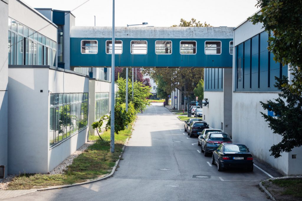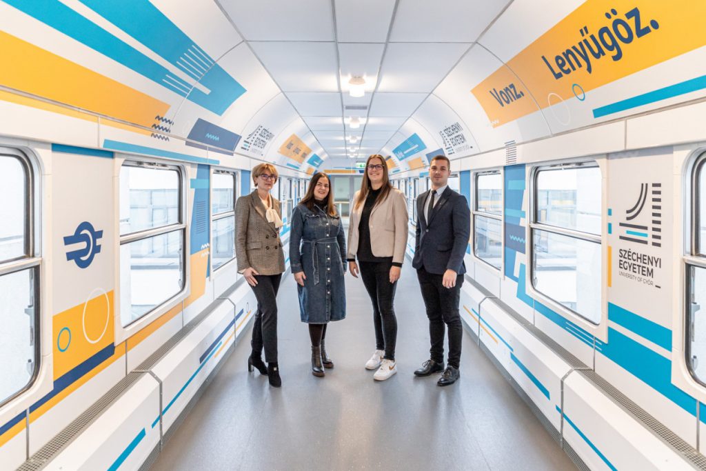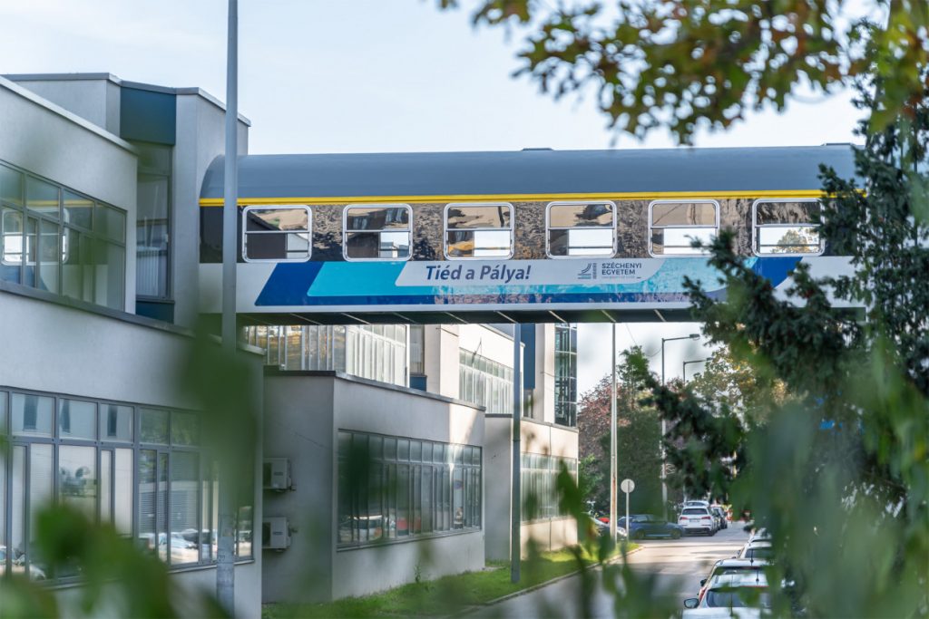 A győri Széchenyi István Egyetem központi tanulmányi épületét és laborjait 1975 óta köti össze egy függőfolyosóvá alakított vasúti kocsi. Ennyi idő alatt még egy helyben álló vasúti kocsi is sokat képes romlani, de most az egyetem és a MÁV-Volán csoport közösen kívül-belül felújította.