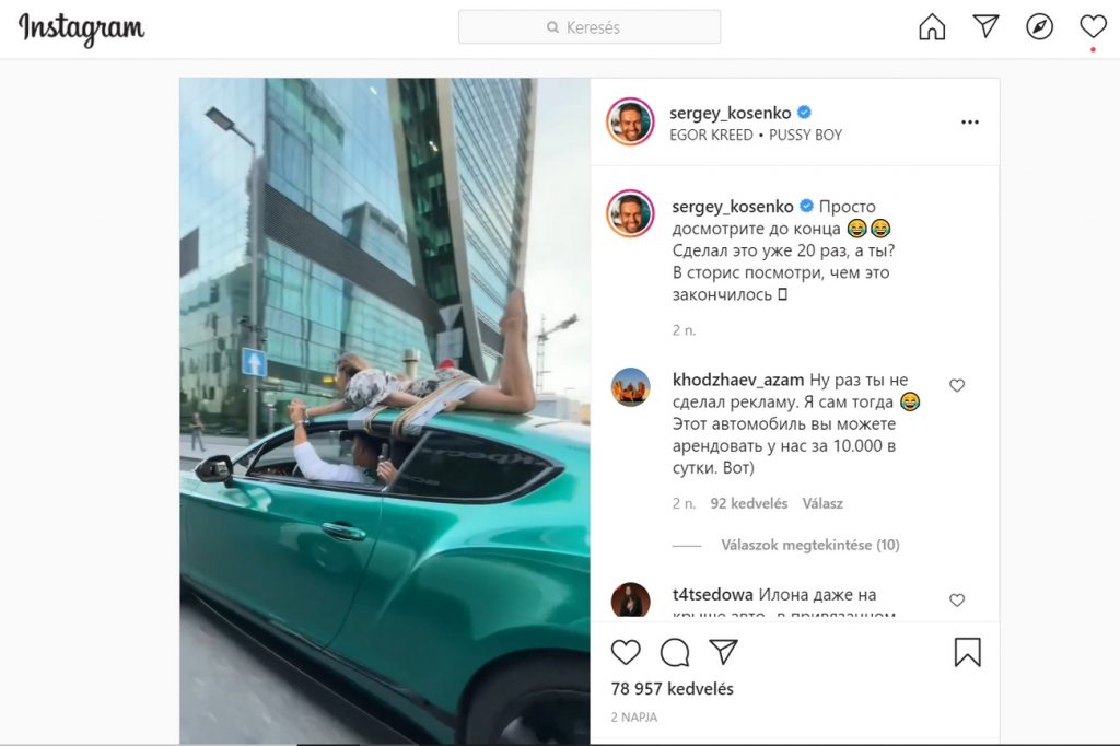 A moszkvai rendőrség természetesen nem hagyta szó nélkül az esetet. Állítólag 750 rubelre büntették Szergejt veszélyes vezetés miatt, ami hatalmas összeg: csaknem négyezer forint! Ha más nem, ez biztosan elveszi az ötmillió insta-követővel rendelkező influenszer és barátnője kedvét attól, hogy valami újabb látványos hülyeséget csináljanak a közeljövőben!