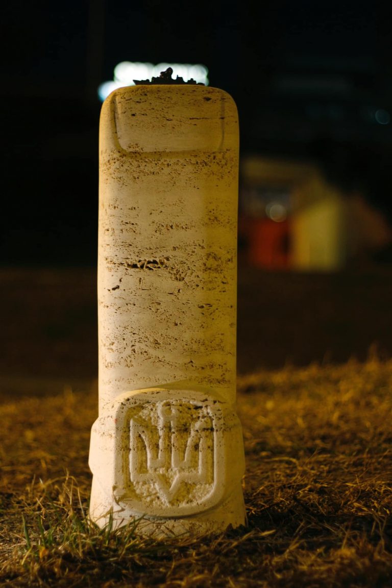 A szobor kő talapzata egy középső ujj, az alján Ukrajna címere látható, a helye pedig a Moszkva-sétány, azaz egyértelmű utalás.
