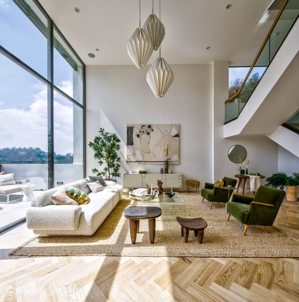 Gyönyörűen keverednek a stílusok, de azért a modern dominál. Na és a luxus.