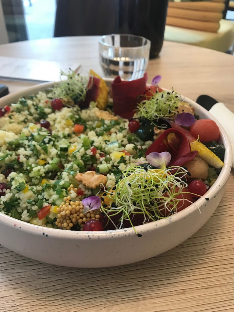 Mintha az ember egy kellemes és nyugodt buborékban ülne, biztonságban a kinti rohanástól. A Horizont mögött a Szimply csapata áll, a konyha szofisztikált és modern, nagyon odafigyelnek a legapróbb részletekre is. Könnyű díjazni azt az energiát, amit beletesznek egy-egy tányérba, ez például egy kuszkuszsaláta.