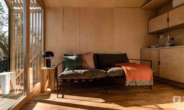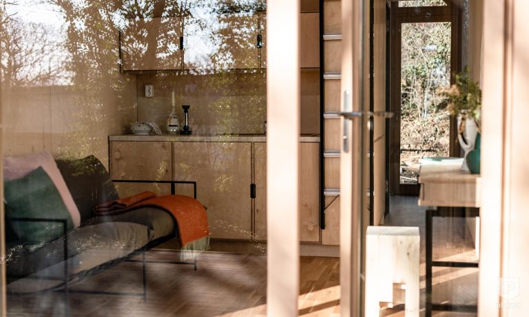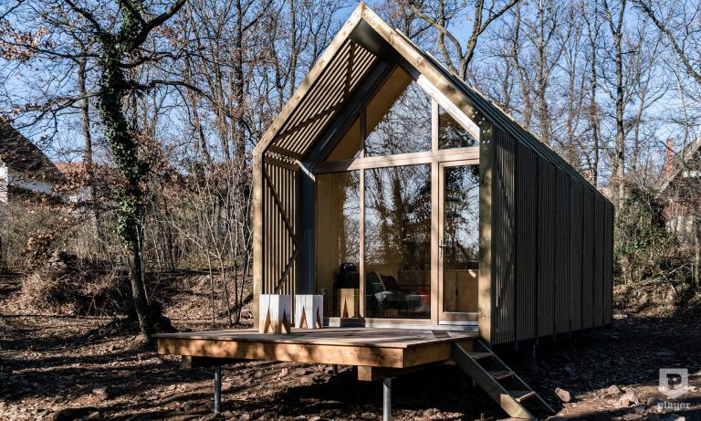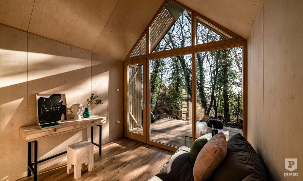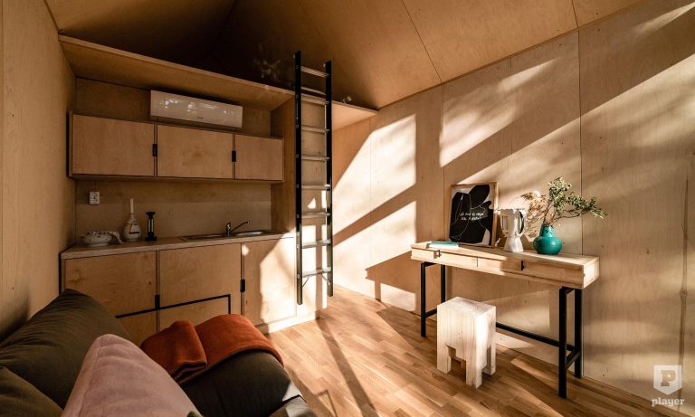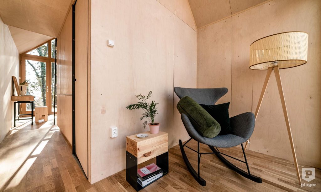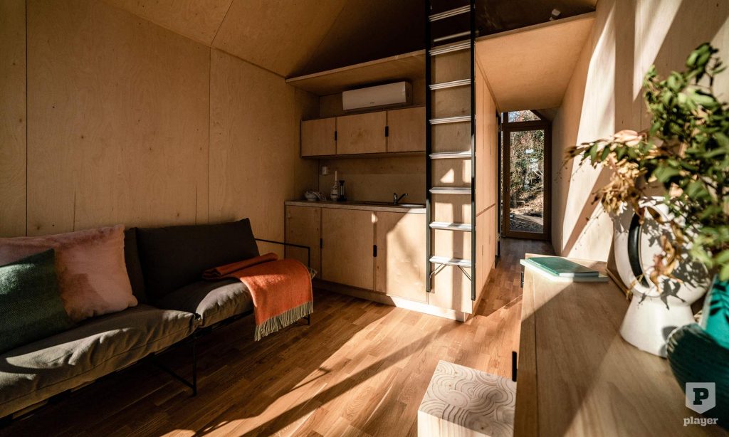 Hangulatos kabinházairól ismerjük a magyar Hello Woodot, és a legújabb projektjük a korábbi Kabinka újragondolása. A második széria újdonsága, hogy az épület közepére egy kocka alakú „dobozt” képzeltek el, amely a konyhát, a fürdőszobát és a beépített szekrényt is magába foglalja. A doboz ezzel két helyiségre – nappalira és hálófülkére –, valamint az azokat összekötő folyosóra bontja a teret, fölötte pedig még egy galéria is helyet kapott.