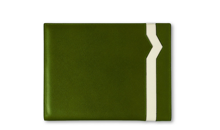 Ennél kifinomultabb megjelenést egy iPad tárolására megtervezett táskának el sem lehetne képzelni. Már csak azért is vennék egy ilyen kütyüt, hogy később megvehessem hozzá ezt a táskát. Az 1937-ben alapított olasz brand a luxus kiegészítőkre specializálódott. Ez a bőr táska az új szezon terméke, designja a '60-as évekbe repít vissza. A kontraszt, amely a zöld és fehér színek közt húzódik, karakteressé teszi a dokumentumok tárolására is alkalmas darabot.