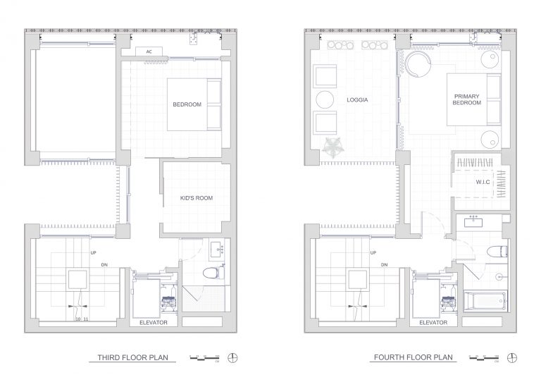 Az egybenyitott közösségi terekben meghatározó az egyedi tervezésű terrazzo padlóburkolat, míg a nyers anyaghasználatot ellenpontozza a teljes hosszban beépített fehér tölgyfa konyabútor. Ugyanezzel az anyaggal dolgoztak a nappaliban és a tároló helyiségekben is.