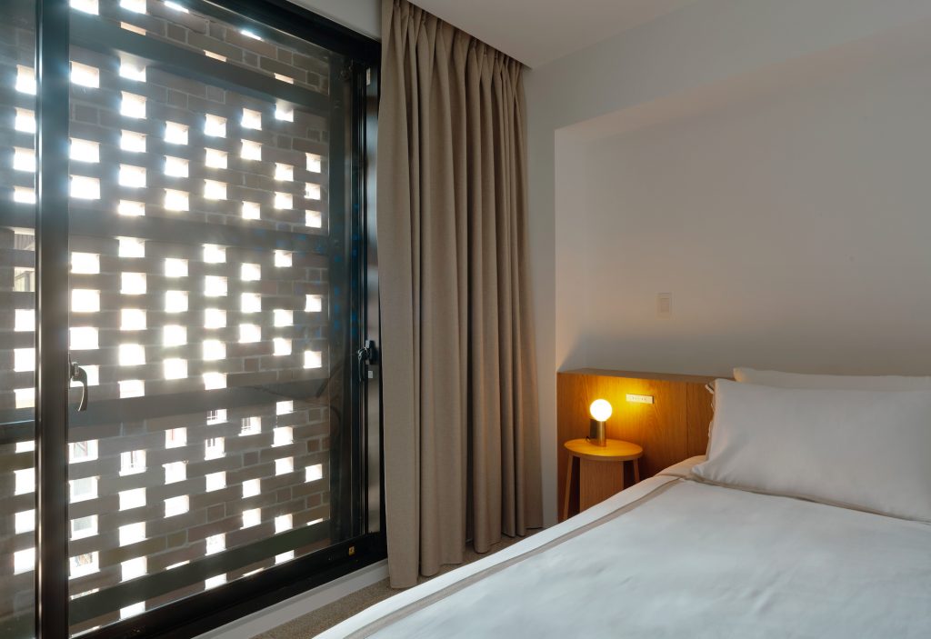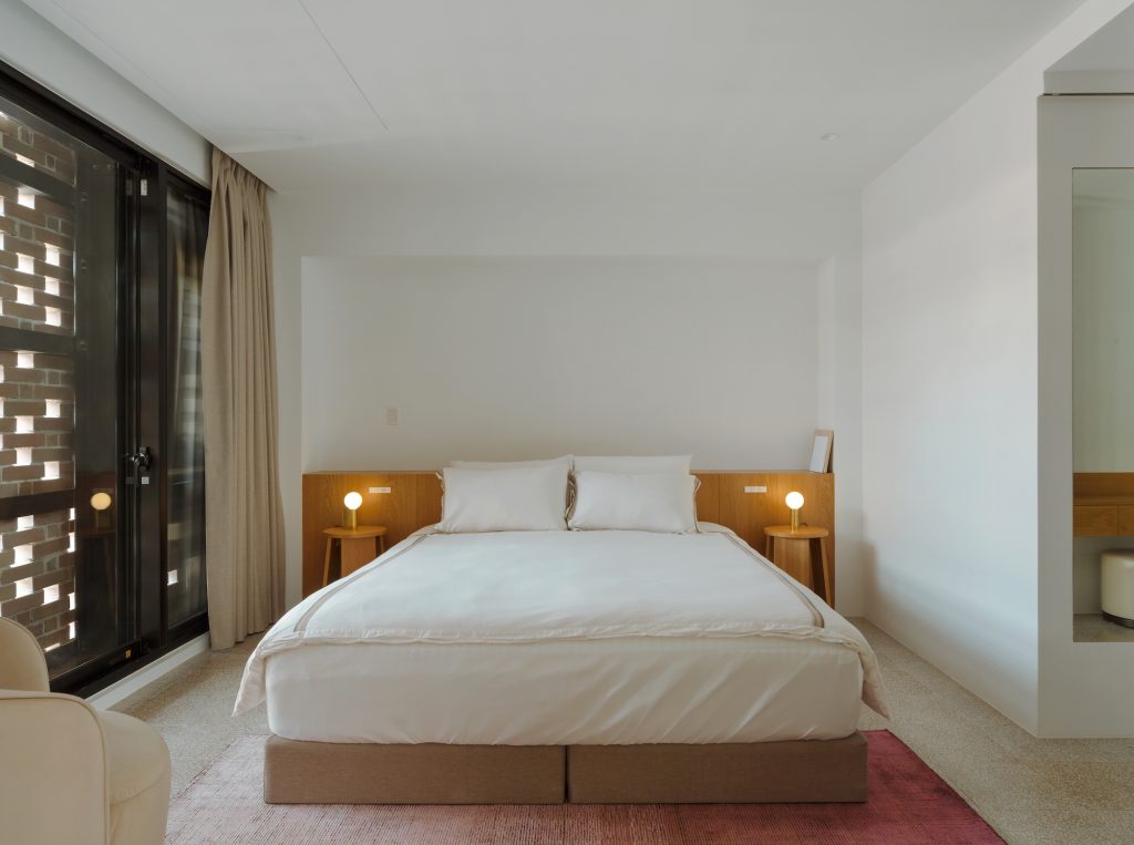 Szándékosan kevés anyagfajtát használtak, ezzel is nagyobb figyelmet irányítva a téglahomlokzatra, egyúttal elősegítve a pihenést a csendes, minimalista beltérben.