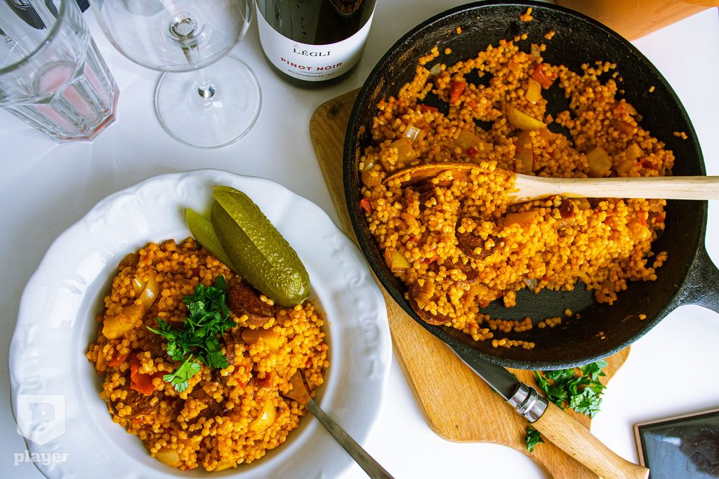 8: Negyedóra elteltével kóstoljuk meg a tarhonyát, ha már nem ropog, de még picit kemény, akkor húzzuk le a serpenyőt, és fedjük le 10 percre! Ez a momentum elhagyható, de szerintem megéri ennyit még várni, mert így minden ízanyag a kis sörétesekbe kerül!