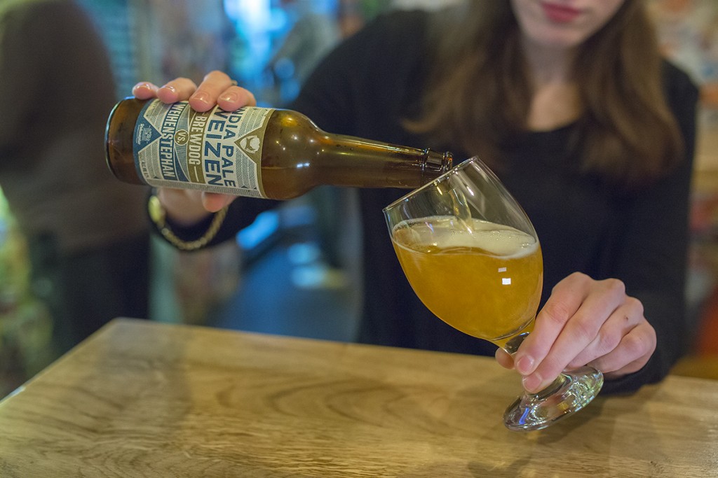Már a menütől könnybe lábadt a szemünk, mikor fotós kollégámmal visszatértem, hogy egy Brewdognál mélyebben is belekóstoljak a helybe: olyan italkínálata van, amihez képest minden “Kézműves sör kapható!!!” feliratú kocsma parvenü. Átlagos söröket még hírből sem fogsz találni, de még alsókategóriás külföldi lagereket sem. A Hopsban száznegyven féle, csakis minőségi sört lehet kapni üvegben: soktucat belgát, amerikaiakat, skótokat, angolokat, cseheket, hollandokat: és mindenből a legjobbat. A kört azért egy 5 A.M. Sainttel és egy Punk Ipával kezdtük: a Brewdogék alap ipáit nem lehet megunni és nem lehet belőle eleget sem inni. A gyönyörű, míves porceláncsapból érkezett is a skót rettenthetetlen sör, amiért már a fotót visszanézve nyúlnánk reflexből újra.