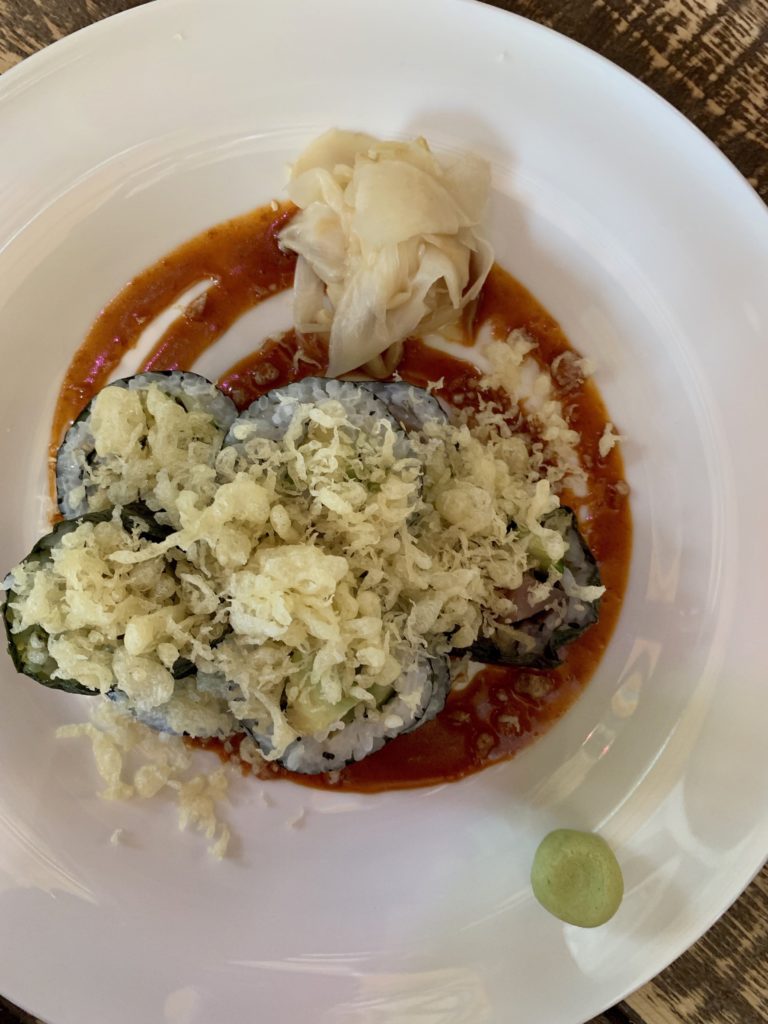 Hatan hatféle ételt kértünk, így mindenbe belekóstoltam, de kezdem azzal, amit én választottam. Ez a már fentebb is említett Ebimayo shrimp, ami egy japán eredetű finomság: rákfarok bundában, majonézzel. Ehhez készült egy rizs, koreai kimcsi, és párolt zöldségek, a rákok pedig egy friss káposztasalát ágyon ültek, némi majonéz társaságában.