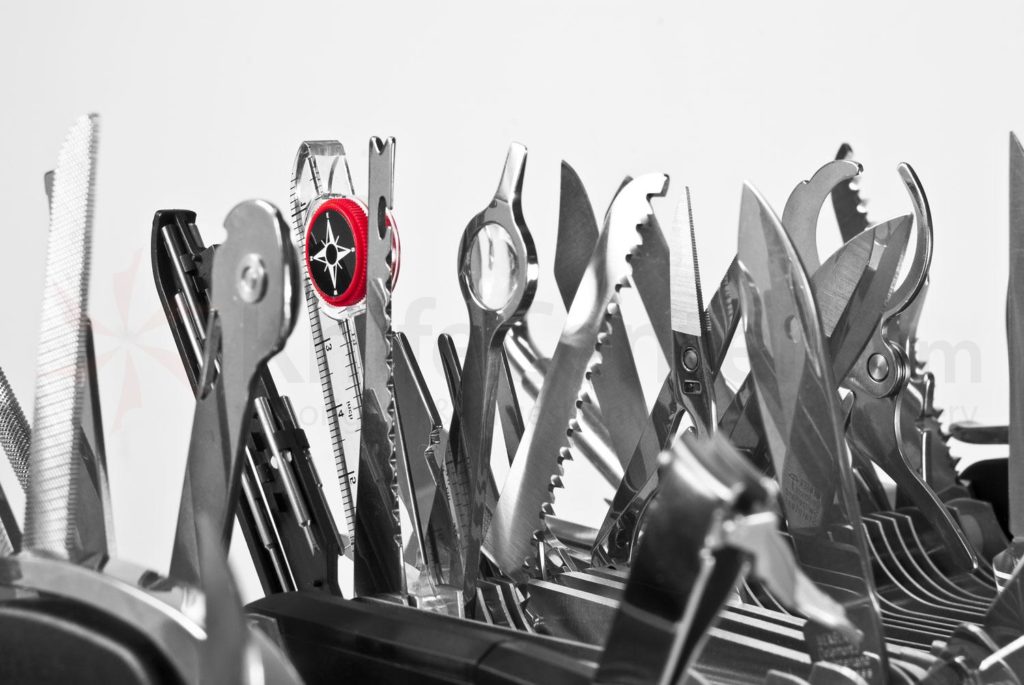 A 87 eszközzel felvértezett minekenvezzelek késmasina 9 ezer dollárba kerül, a világ legkisebb szerszámosládájának is nevezhető svájci katonai bicska összesen 141 feladat elvégzésére alkalmas, ezzel pedig a Guinness-rekordok Könyvébe is bekerült.