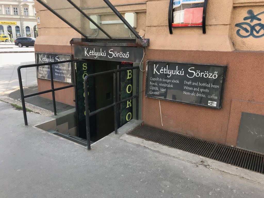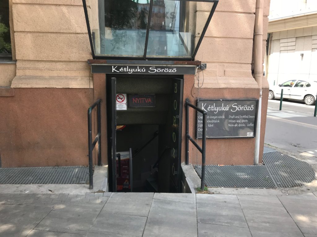Mint neve is mutatja ennek a dive barnak, azaz alagsori kocsmának két bejárata van. A helyzet az, hogy a Kétlyukú jobb hely, mint amilyennek kinéz, például teljesen iható fröccsöt adnak, a minőségi olaszrizling decinként 100 forint, a szóda 20 forint.