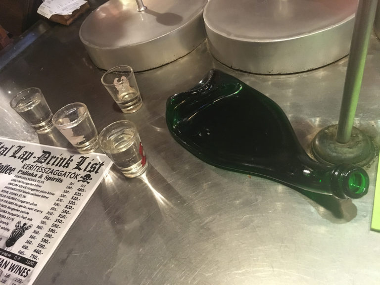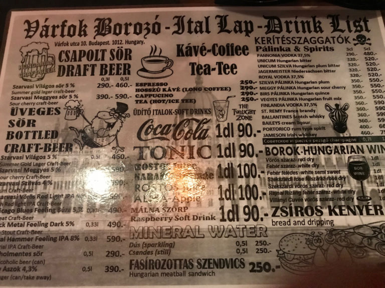 Zsíroskenyér lilahagymával 150 forint. Hubertus feles 145 forint. Nyilvánvalóan 1000 forintból lehet szerezni egy rendes spiccet – nem egy újhullámos brewery van a hetedikben, ahol egy 0,3-as import craft beer többe kerül.
