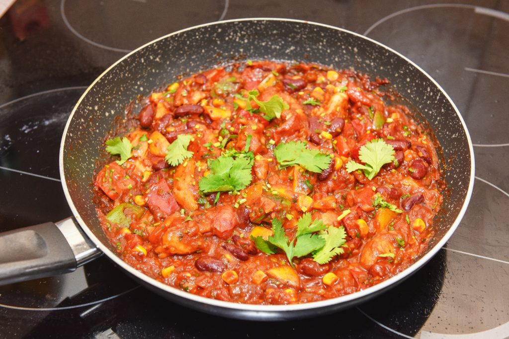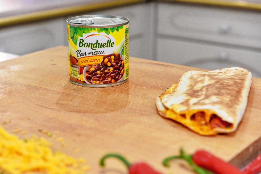 Kevés olajon, magas hőmérsékleten lepirítjuk a csíkokra vágott csirkecomb filét, és ha színt kapott kiszedjük egy tálba. A serpenyőben folytatjuk a főzést. Hagymát, majd fokhagymát pirítunk, a végén pedig hozzáadjuk a kockára vágott színes kaliforniai paprikát és a paradicsomot. Ha minden megpirult, paradicsomsűrítményt adunk hozzá és ízesítjük római köménnyel, valamint füstölt paprika őrleménnyel. Egy kevés vizet adunk hozzá, hogy a paradicsompüré ne égjen oda. Amikor mártás állagú lesz, hozzáadjuk a Bonduelle Mexicana keveréket, a pirított csirkecomb csíkokat és készre fűzzük a ragut, lime-al tovább ízesíthetjük.