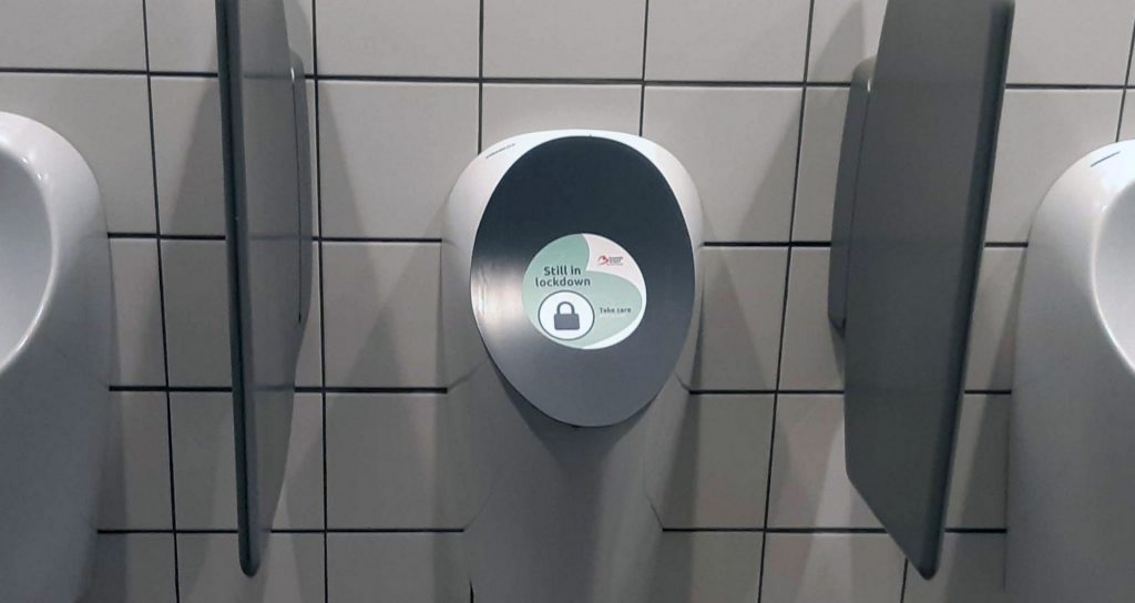 Lefóliázott piszoárok, lefedett mosdókagylók, vicces feliratok vagy gyászos fekete lepel, a szociális távolságtartás érdekében.