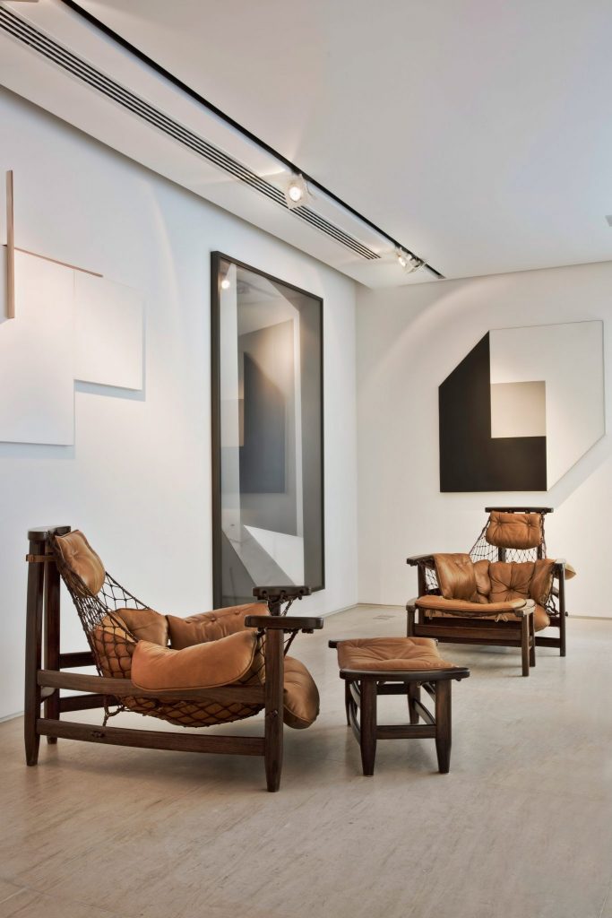 A bútorok és dekorációs elemek többnyire modern, geometrikus darabok, azonban néhány festmény és organikusabb tárgy lazítja a merev hangulatot.