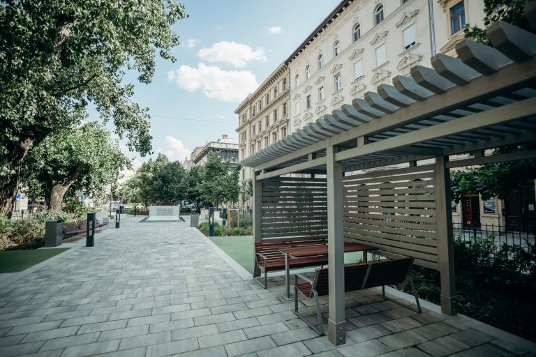 Idézetekkel, utcabútorokkal és kellemes árnyakkal újult meg a Jókai tér, több mint ötezer négyzetméteren.